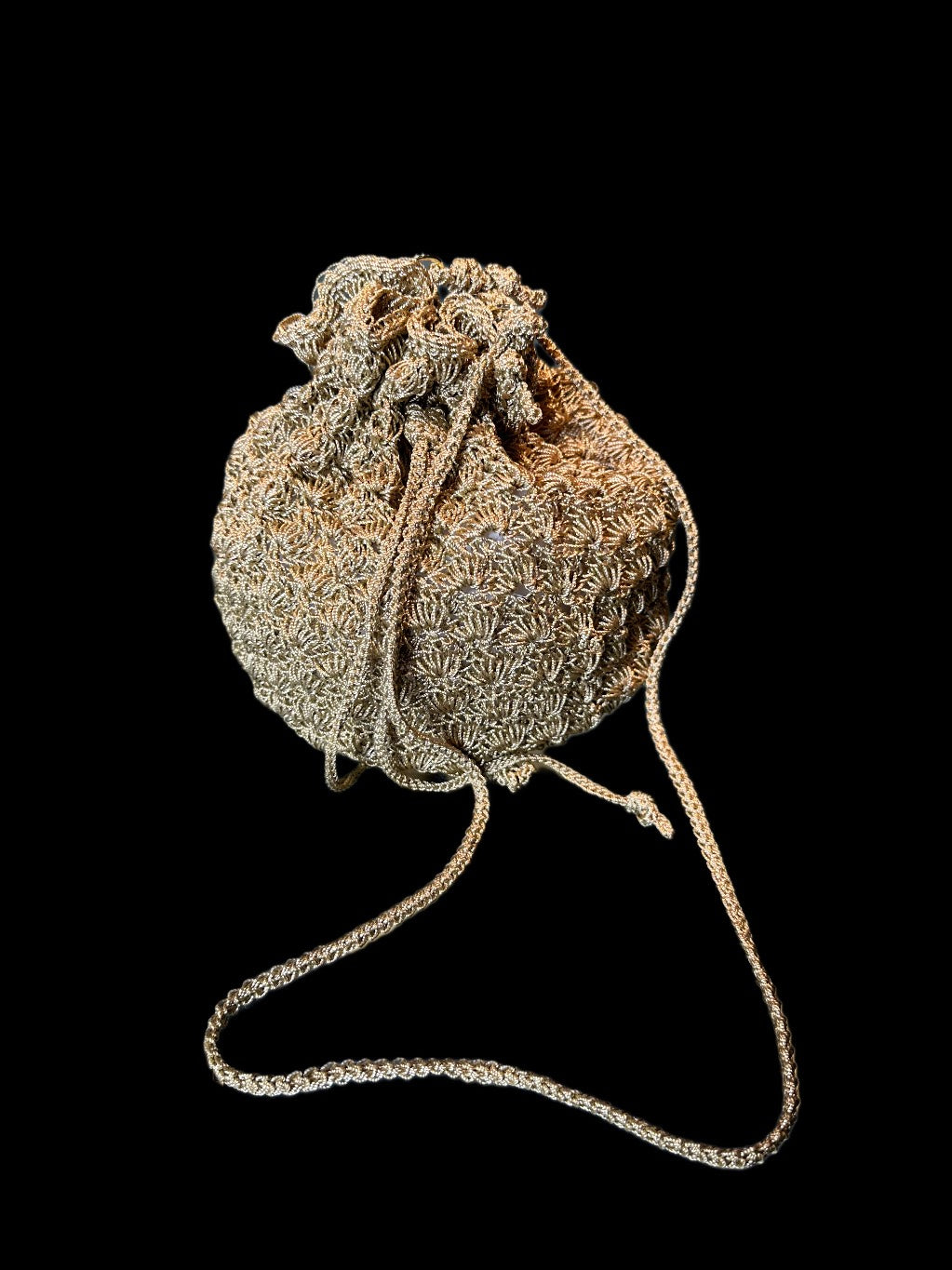 Bandolera tejida a mano, seda viscosa, largo ajustable.
