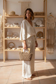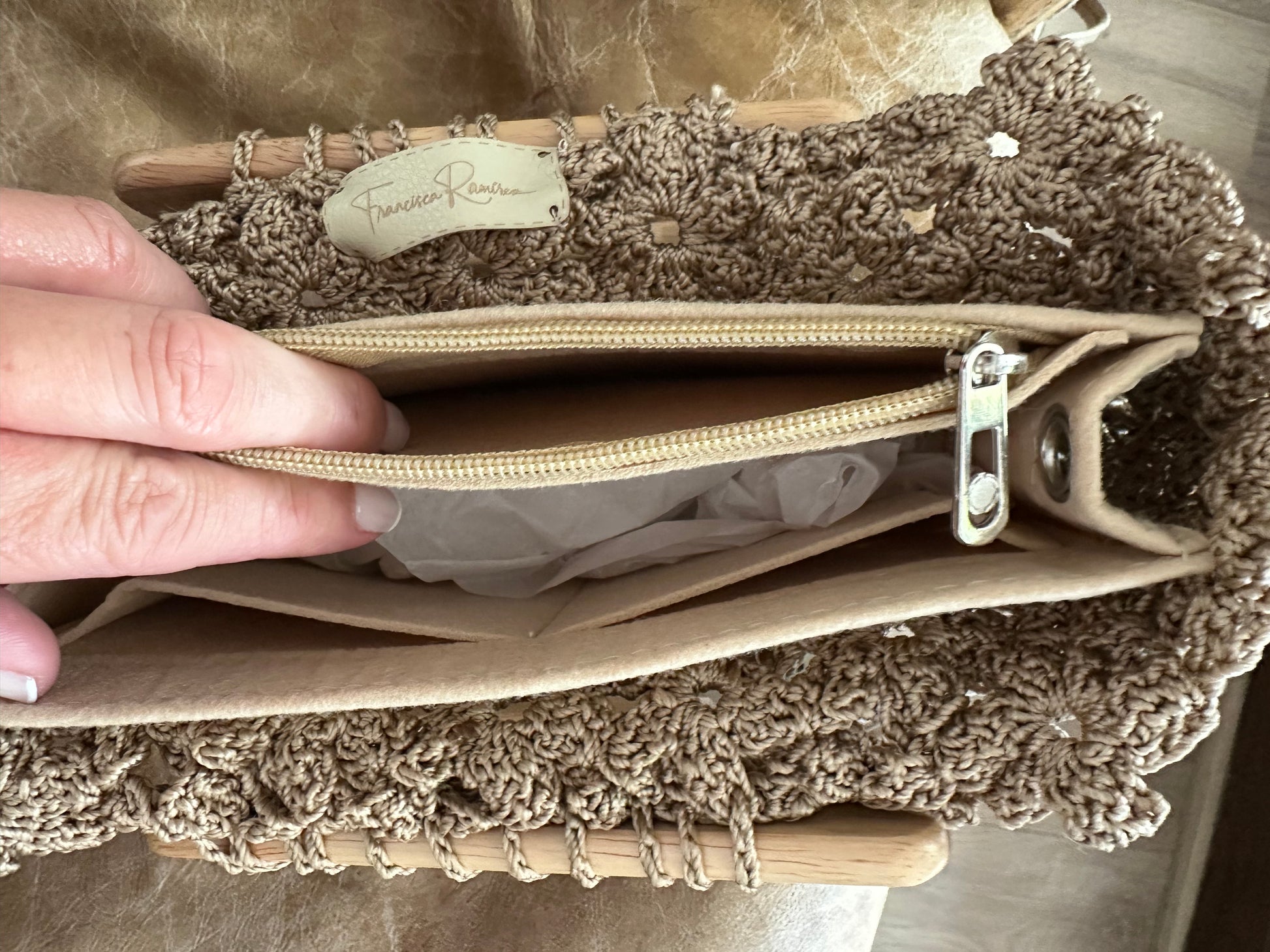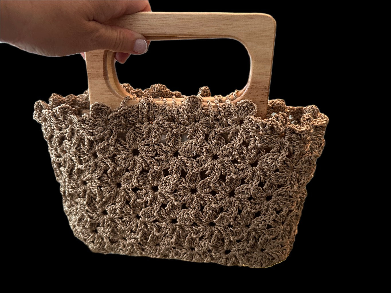 CARTERA GRACIA- SEDA TEJIDA FLORES -ASAS MADERA
