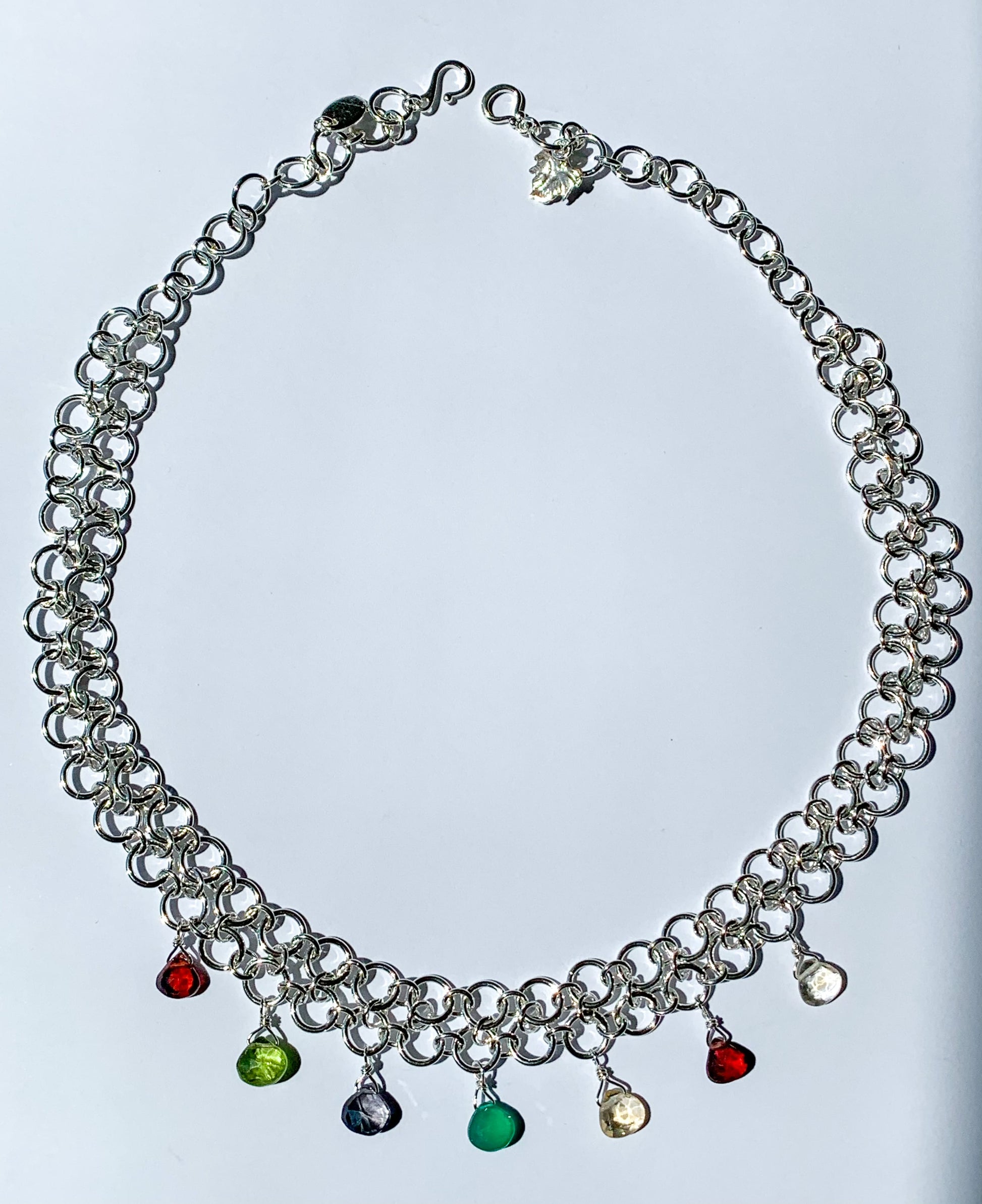 Largo ajustable y terminado en gotas facetadas de Citrino, Granate, Aventurinas, Amatistas.