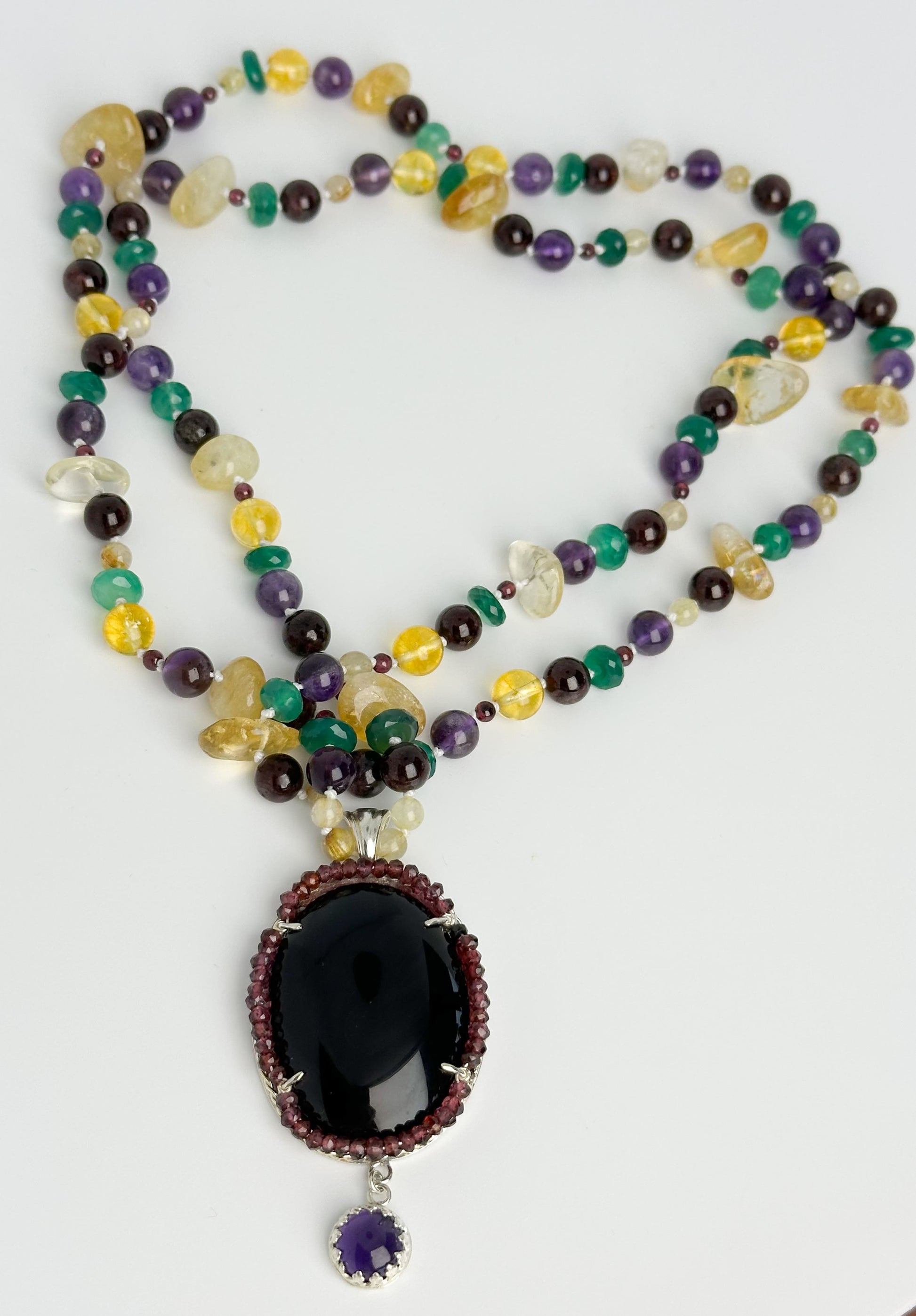 Medallón de gran Onix, rodeado de Granates y Amatista