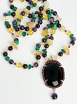 FR 6026- COLLAR PIEDRAS Y MEDALLON ONIX RODEADO GRANATES