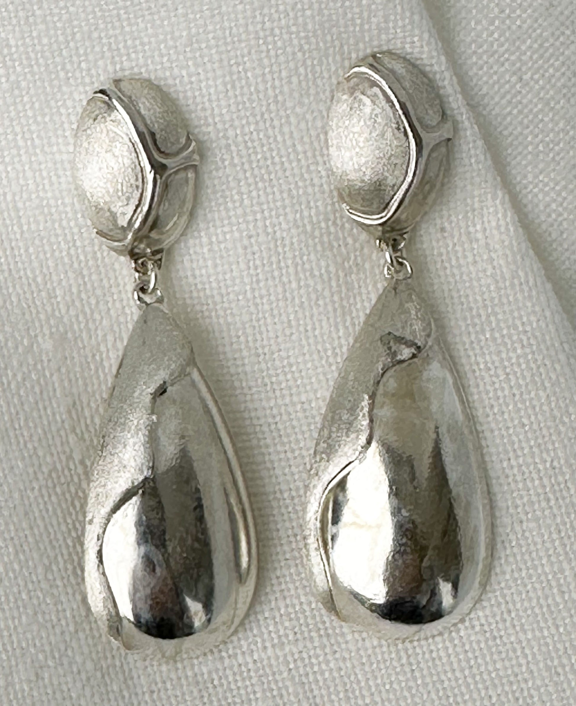 FR3056- AROS PLATA LARGOS EN FORMA DE GOTA TEXTURADOS