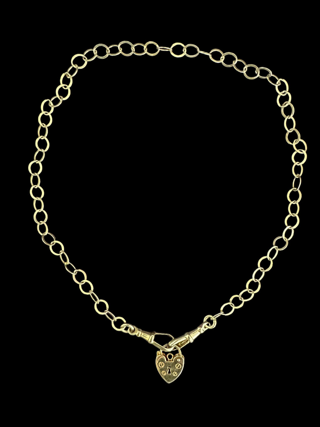 Collar cadena Inglesa doble enganche- colgante candado corazón enchapados en Oro 18 kt ambos
