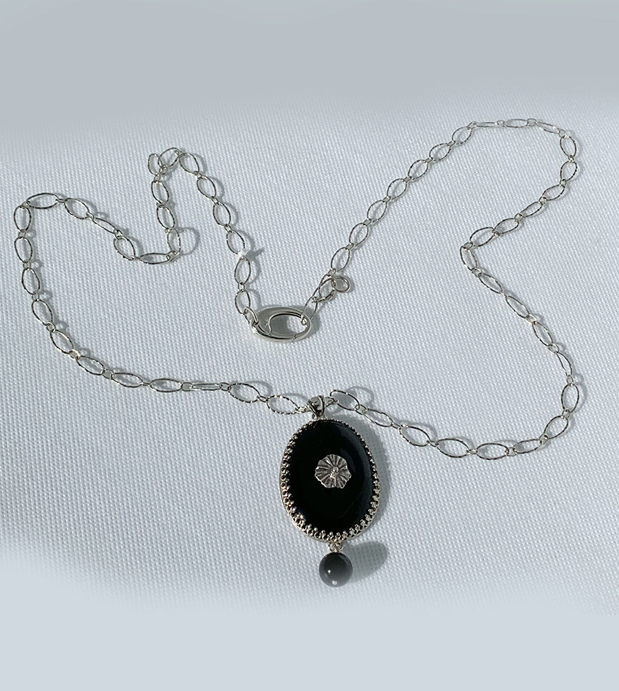 Collar Plata- Medallón Plata Onix con inclusión florcita